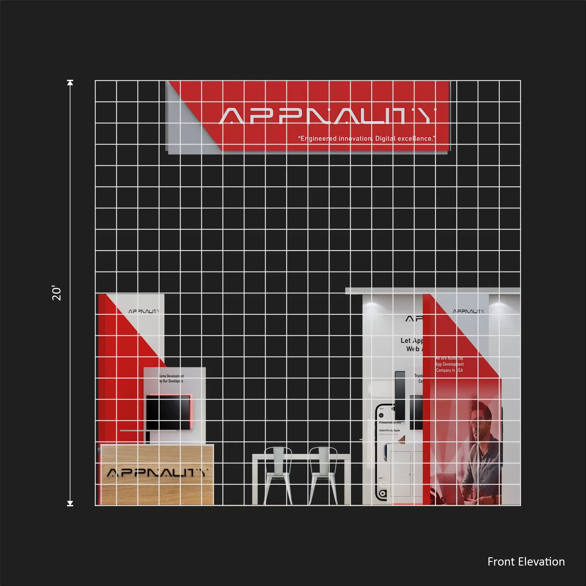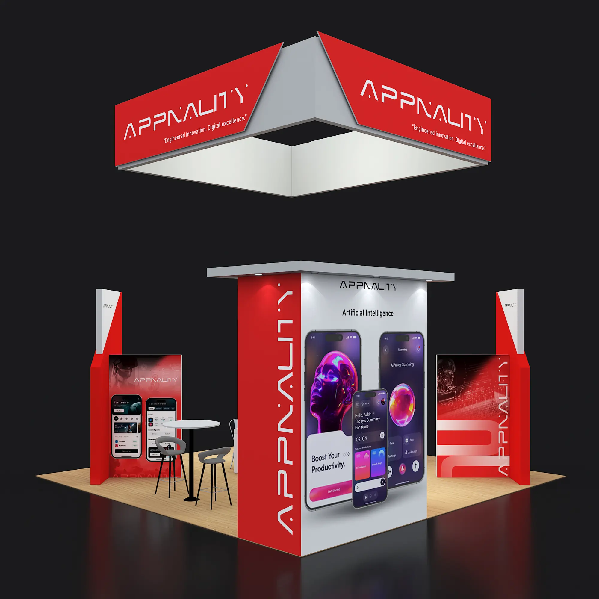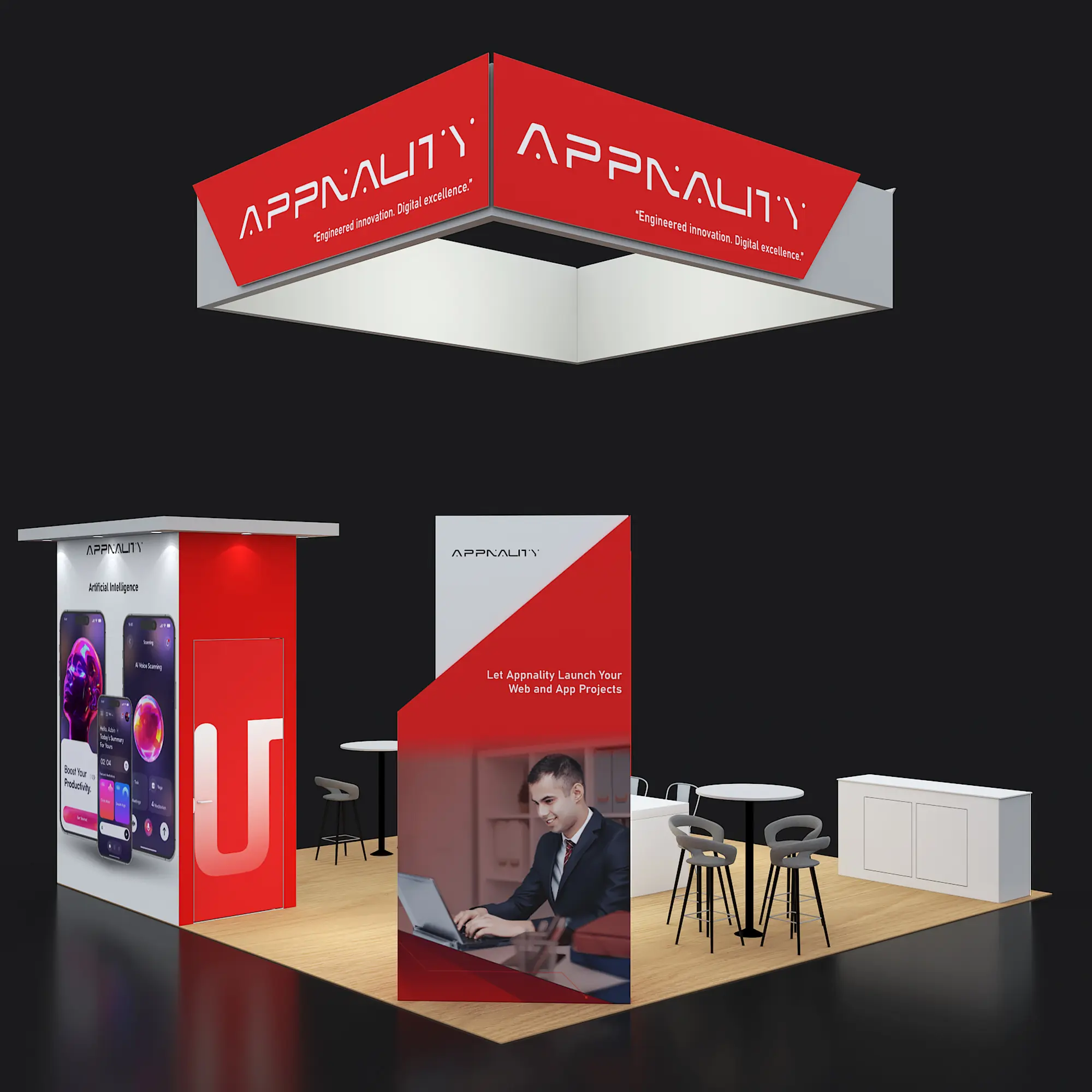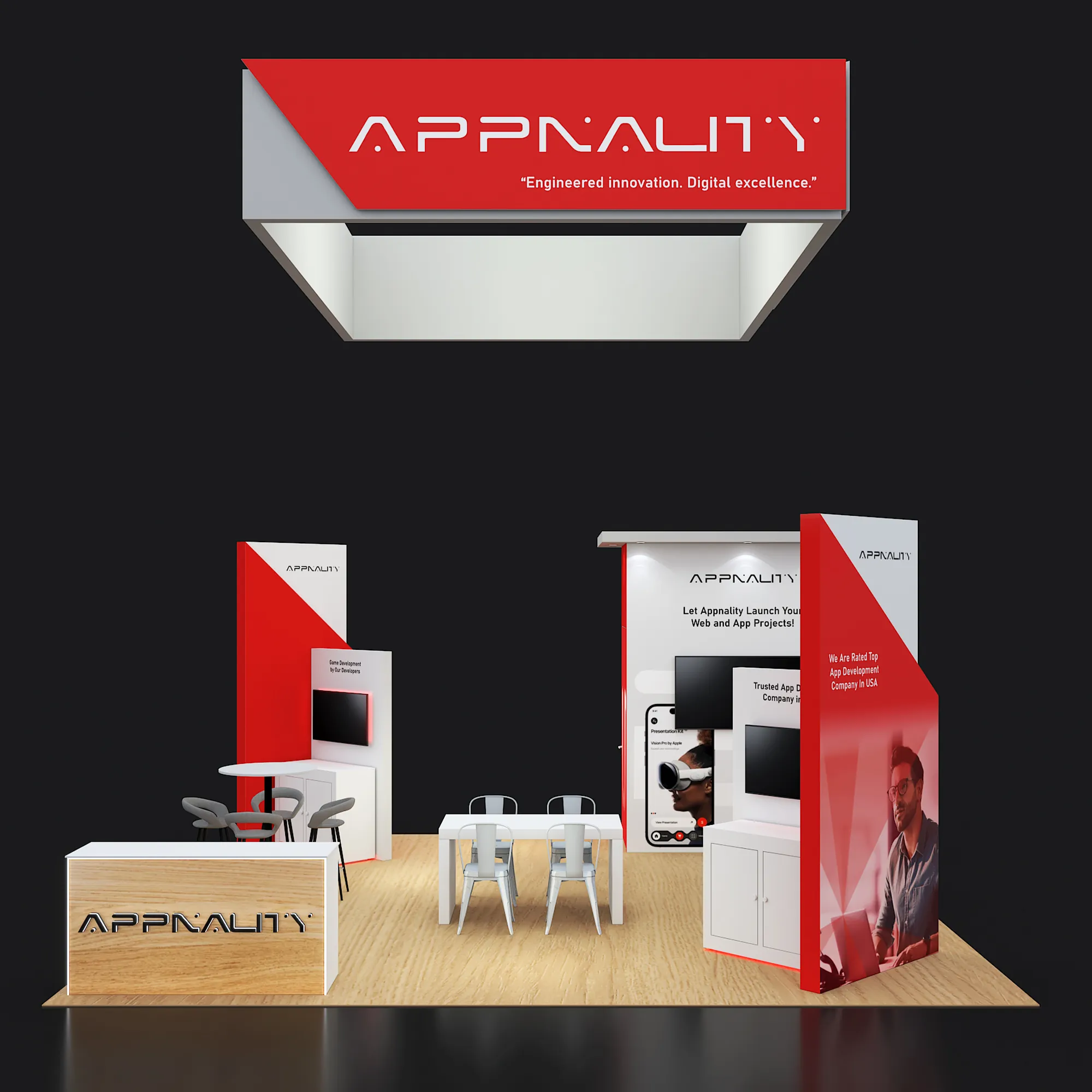 Artwork, power, rigging, and media pre-flighted to the booth spec—no format surprises.