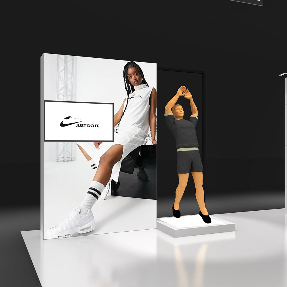 Artwork, power, rigging, and media pre-flighted to the booth spec—no format surprises.