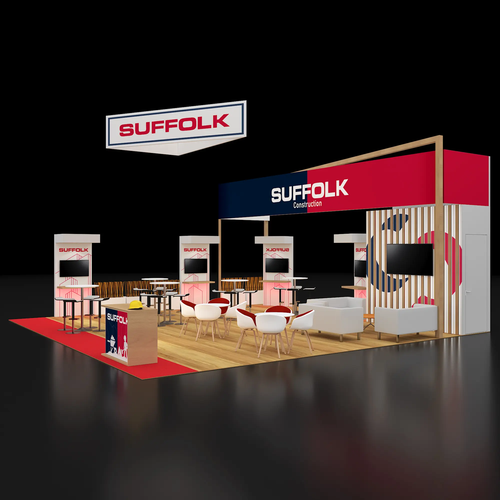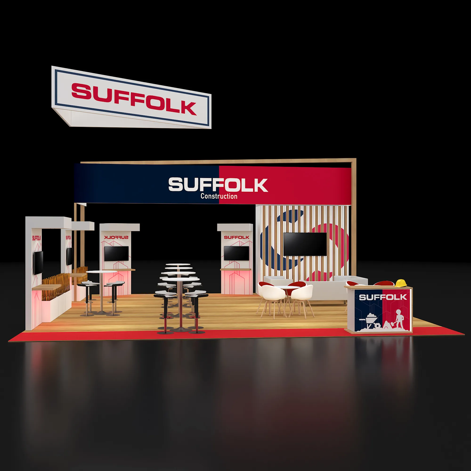 Artwork, power, rigging, and media pre-flighted to the booth spec—no format surprises.