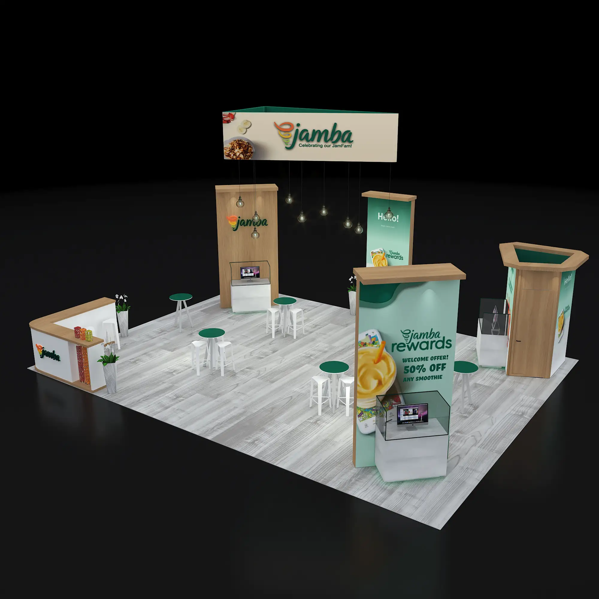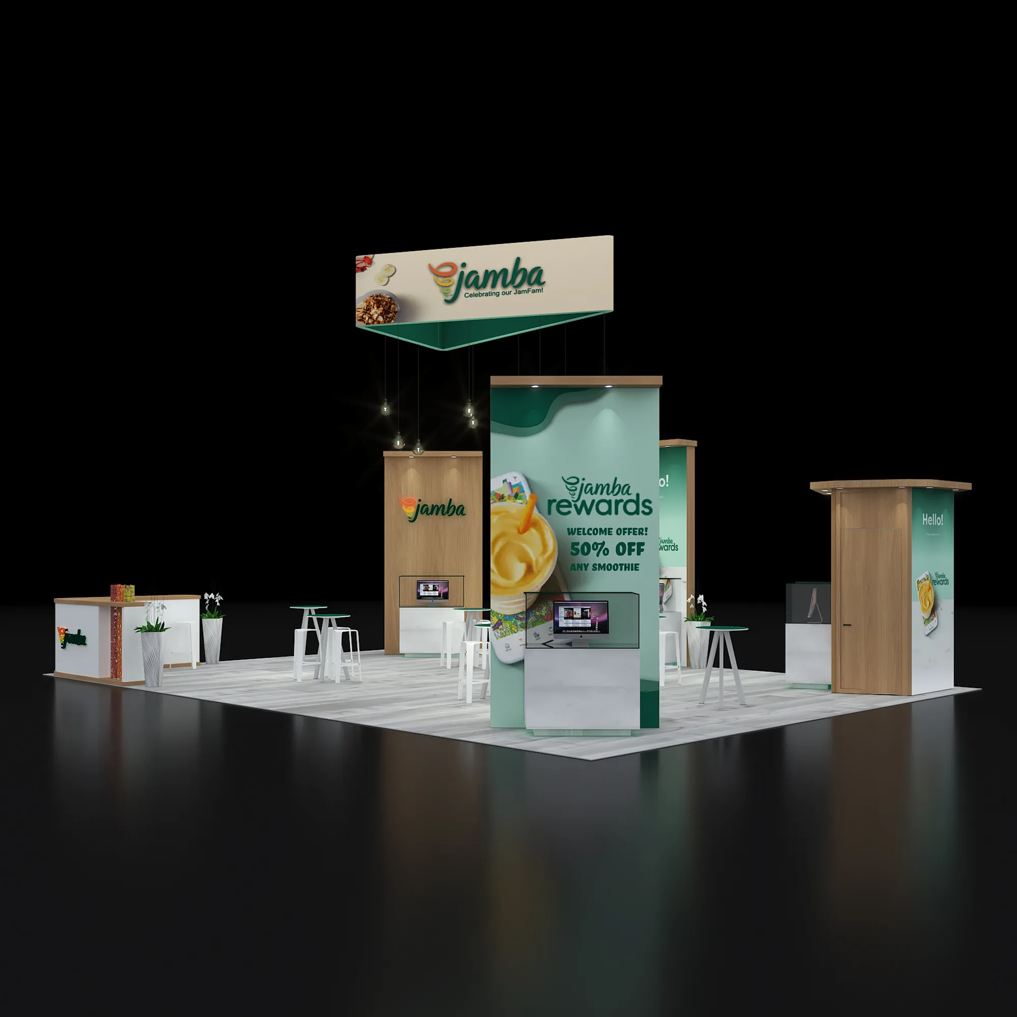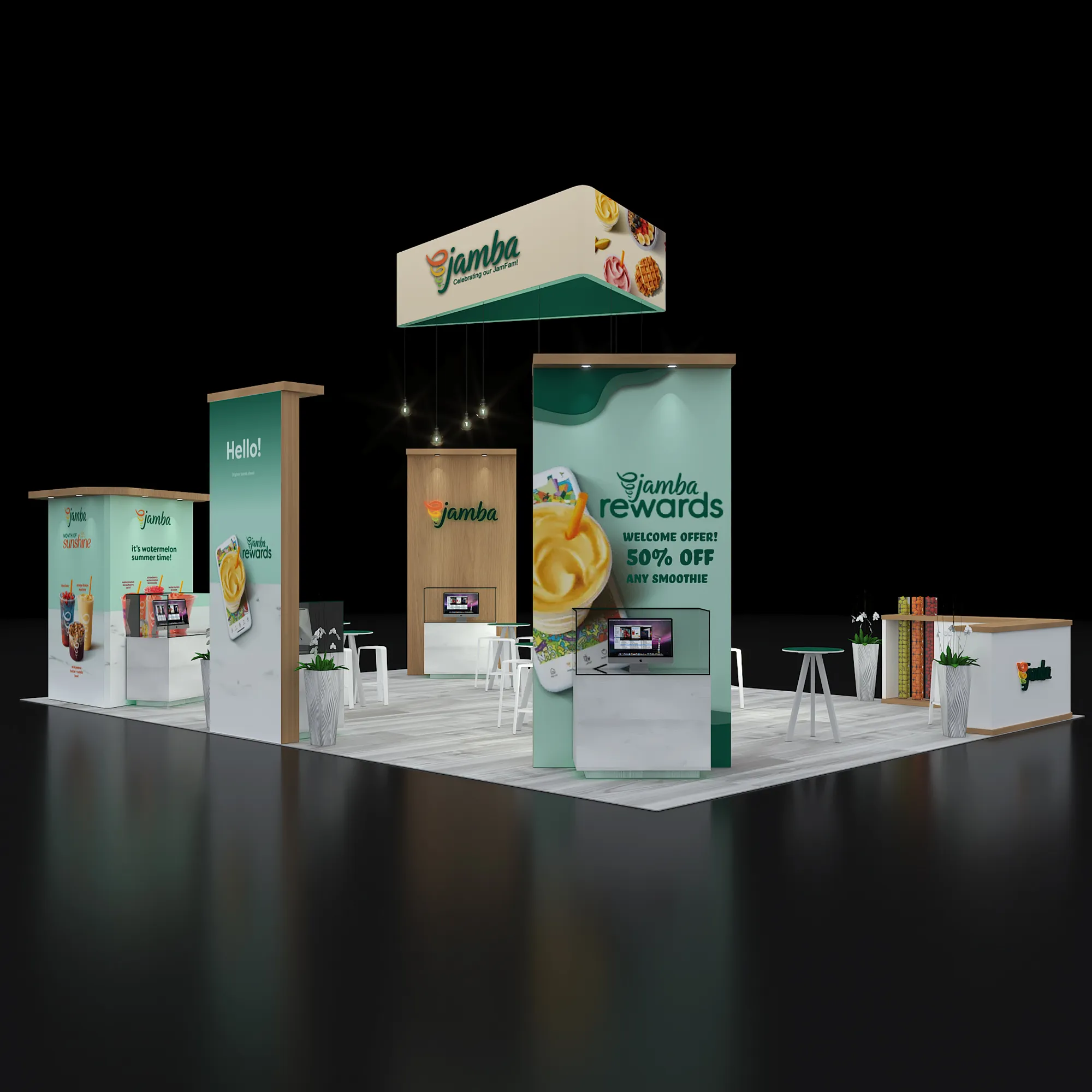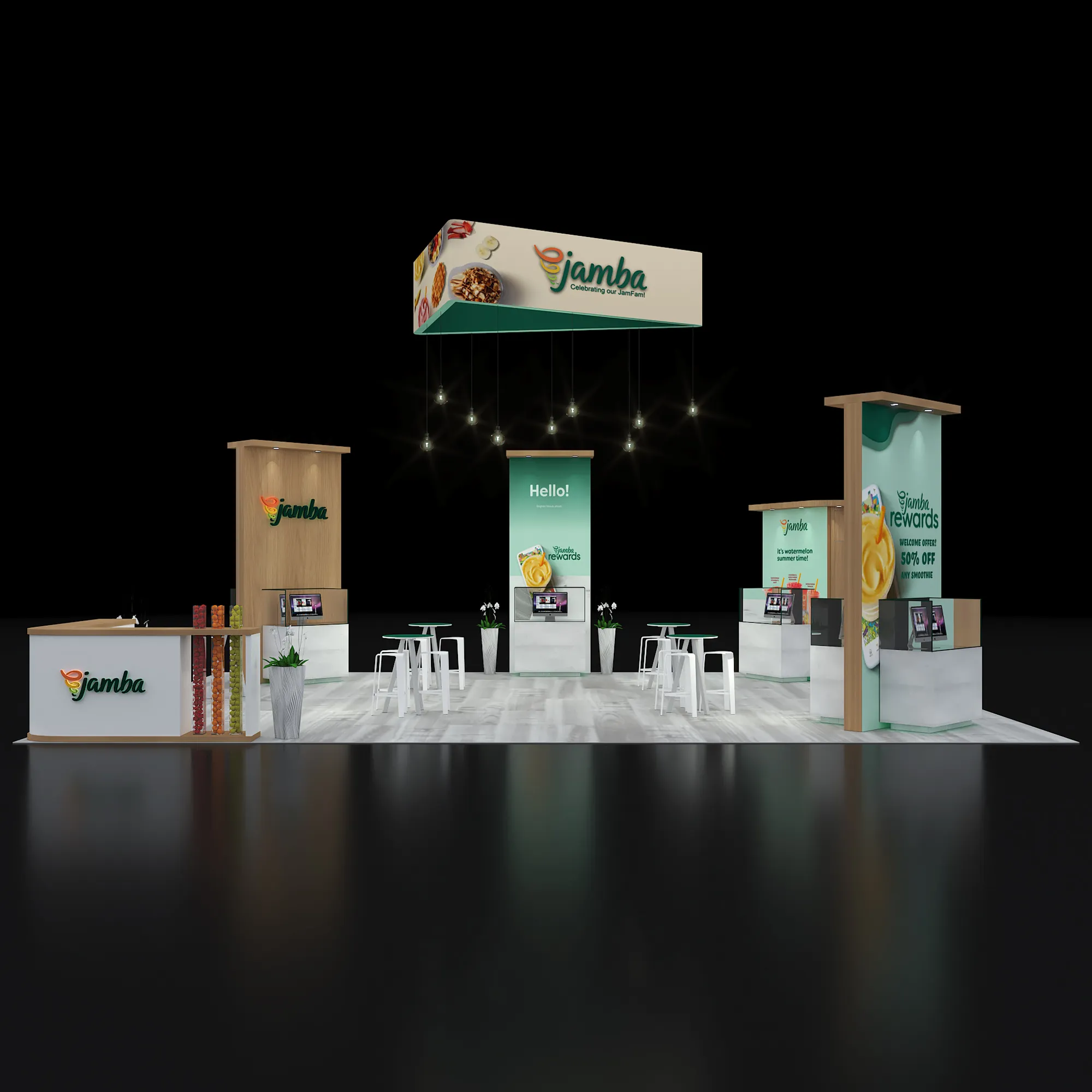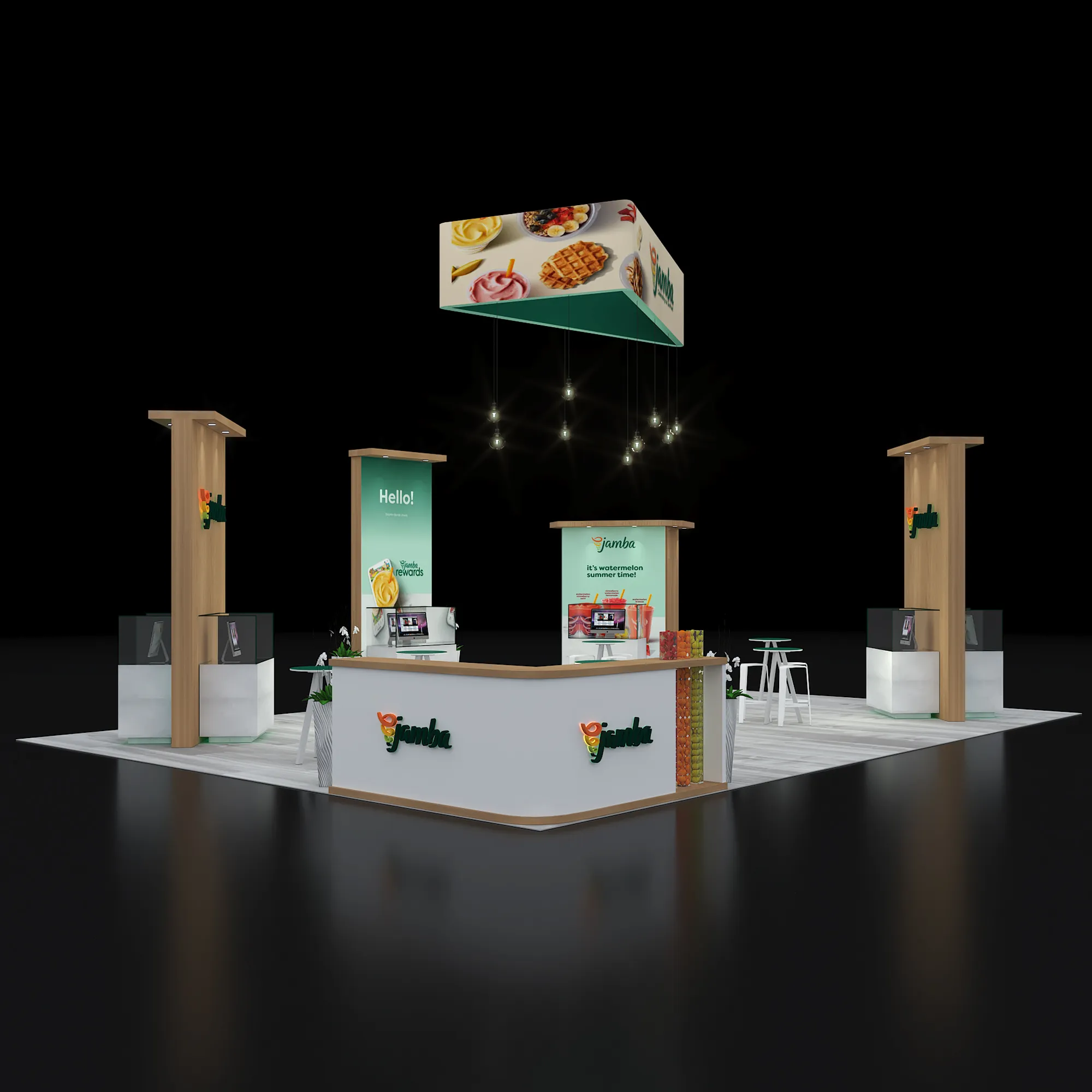 Artwork, power, rigging, and media pre-flighted to the booth spec—no format surprises.